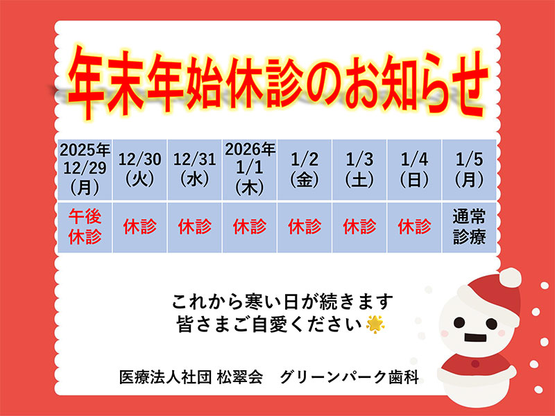 下記の日程で休診いたします。ご迷惑をおかけいたしますがよろしくお願いいたします。